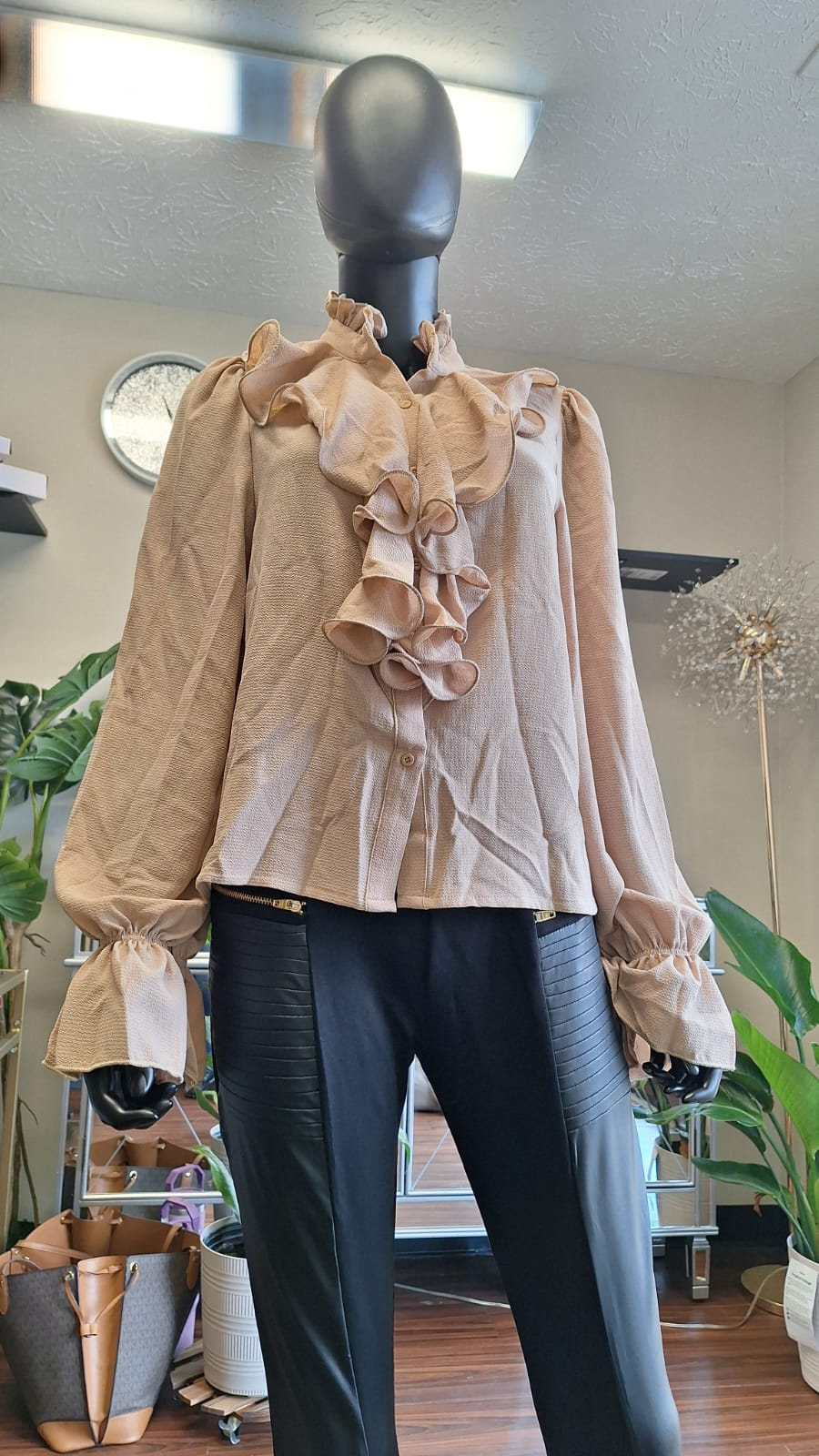 Crafted for those who speak elegance without saying a word, this beige blouse offers more than refined design—it offers quiet power. The fabric drapes with intentional softness, contouring gently while allowing graceful movement. Its minimalist hue evokes golden sand at sunset—a neutral that transcends trends and speaks to timeless taste. Pair it with tailored trousers for a boardroom-ready glow or let it elevate casual denim into something cinematic.